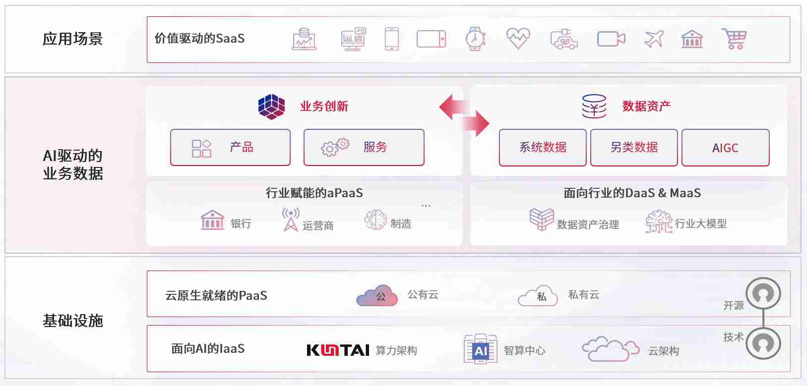 数字时代,,,,围绕企业数字化转型的关键要素,,z6com·尊龙凯时数码开创性的提出数云融合战略和技术体系框架,,着力在云原生、、、数字原生、、、、AI原生和信创产业上架构产品和服务能力,,,,为处在不同数字化转型阶段的快消零售、、、汽车、、金融、、医疗、、、政企、、教育、、、、运营商等行业客户提供泛在的敏捷IT能力和融合的数据驱动能力,,,,构建跨界融合创新的数字业务场景和新业务模式,,助力企业级客户建立面向未来的核心能力和竞争优势,,全面推动社会的数字化、、、智能化转型升级。。。